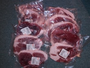Something to note: If you would like more traditional looking ham and bacon, you will want to have your meat smoked. We choose not to have our meat smoked because the smoke spices contain sugar. We do have a pretty great recipe for curing our ham and bacon, which we are happy to share upon request. Maybe that will someday make it on the farm page!